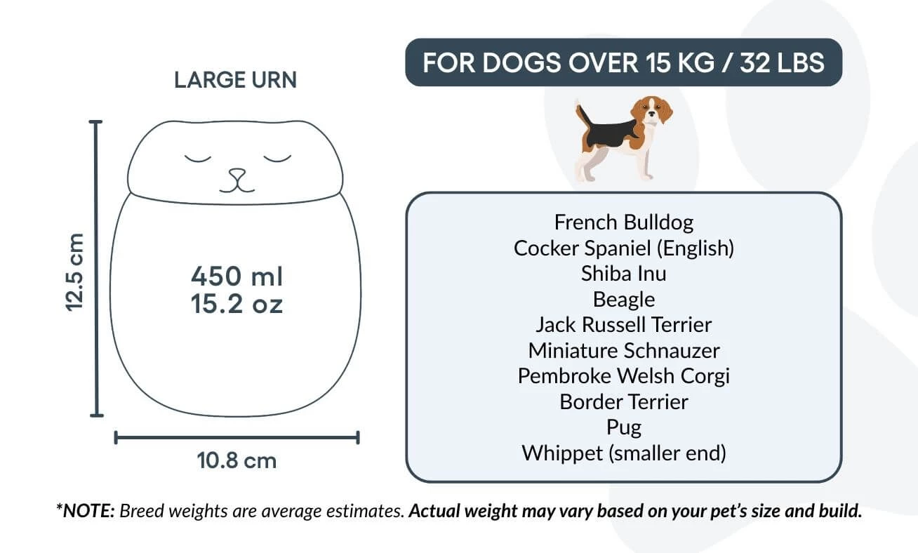 Personalised Ceramic Dog Urn with Sleeping Pet Lid – Pet Cremation Urn for Ashes with Dog's Photo, Name & Dates in a Heartfelt H